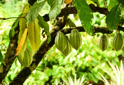 Kakaotræet skal gro i skyggen af større træer, så hvis ikke der er regnskov, er der heller ikke chokolade!